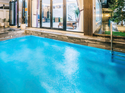 ✓ Bể bơi riêng: Bể bơi tiêu chuẩn ngay tại tầng 1, mang lại không gian thư giãn mát lành.