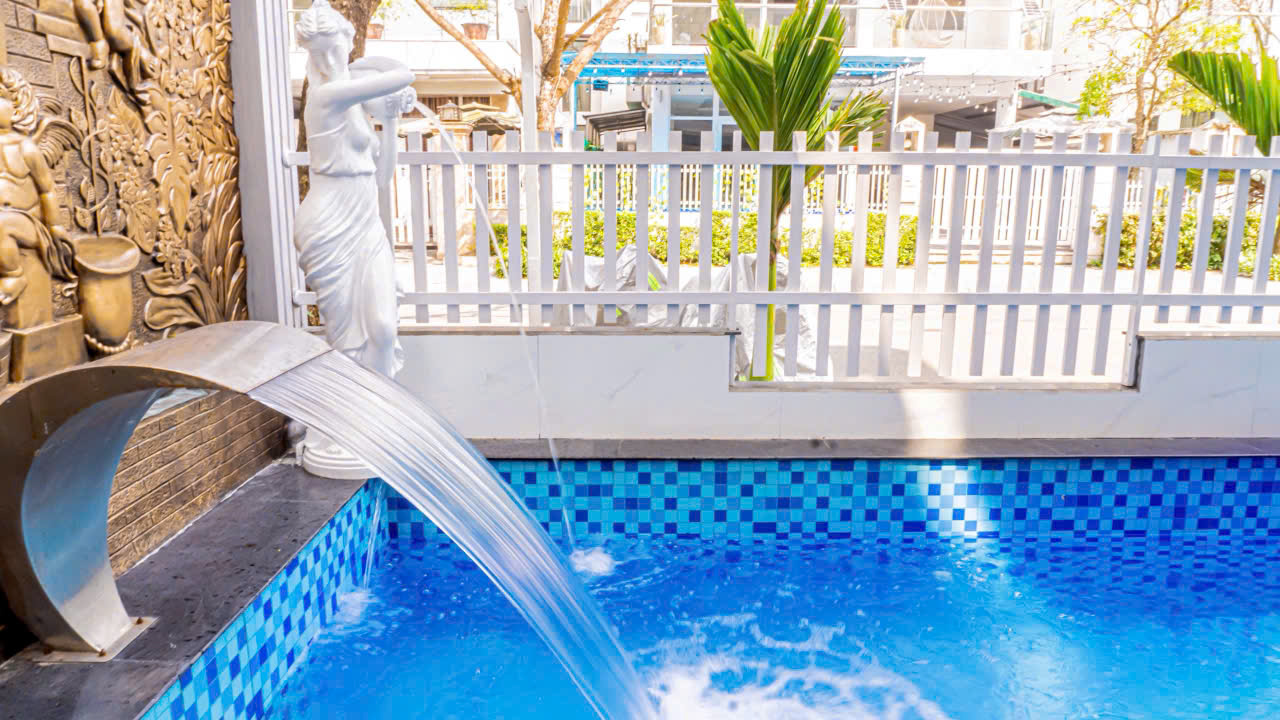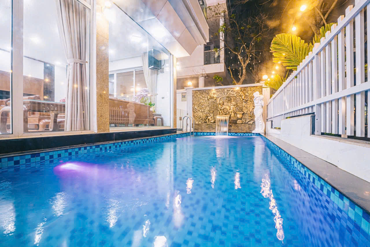 ✓ Bể bơi riêng: Diện tích rộng 50m2, là nơi thư giãn và check-in lý tưởng cho cả đoàn.