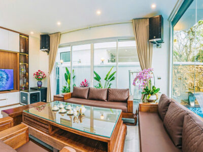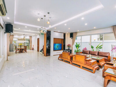 Với thiết kế hiện đại không gian mở tạo cảm giác vừa gần gũi với thiên nhiên vừa ấm cúng thích hợp quây quần bên gia đình, bạn bè. Villa trang bị các tiện ích giải trí bậc nhất giúp cho kì nghỉ dưỡng của khách hàng được vui vẻ và trọn vẹn