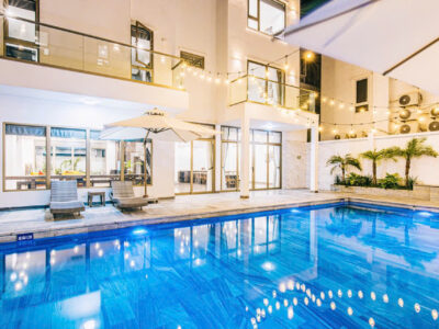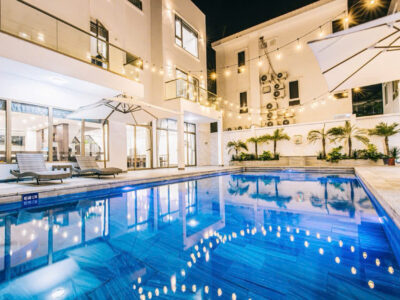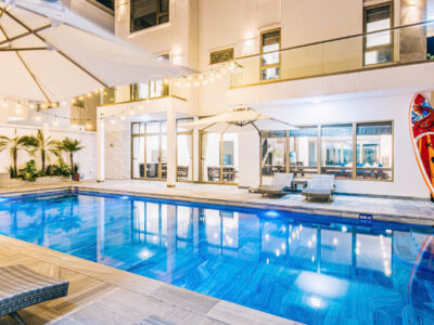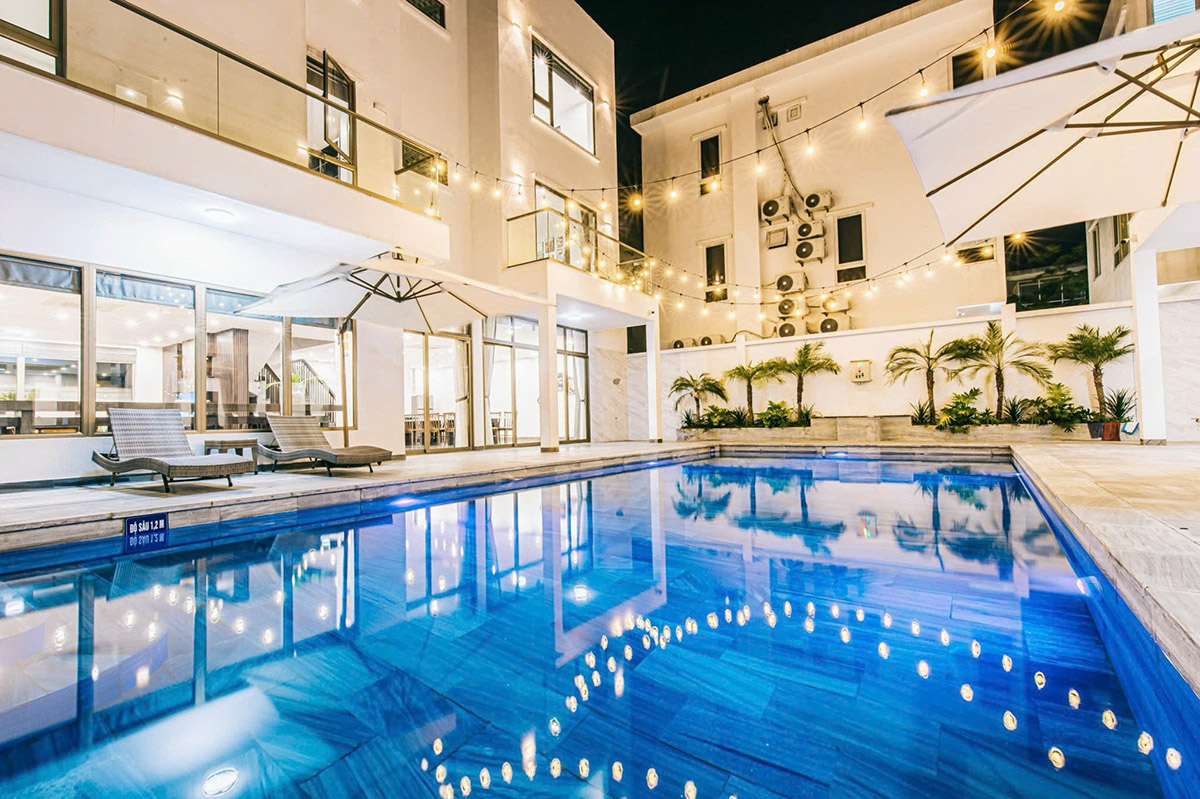 – Bể bơi: Diện tích lớn, trang bị hệ thống sục massage và hệ thống ánh sáng đổi màu lung linh, huyền ảo